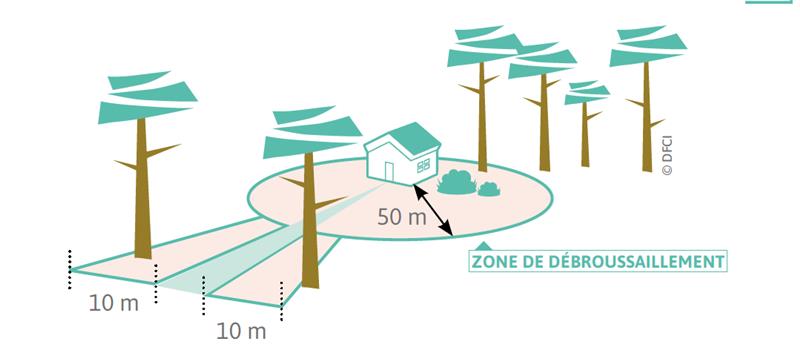Pour éviter les incendies , chaque propriétaire et locataire a l'obligation de débroussailler le terrain environnant à son habitation lorsque la propriété est située en forêt ou à proximité.