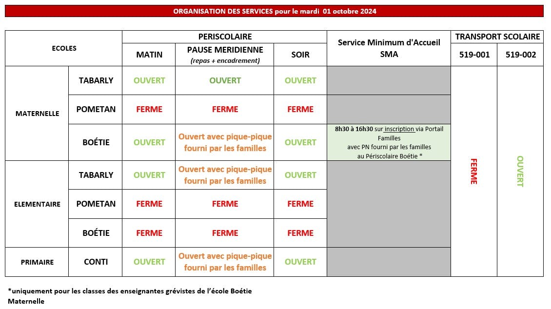 Des perturbations auront lieu au sein des écoles de la ville et des services municipaux (restauration scolaire) ce mardi 1er octobre.