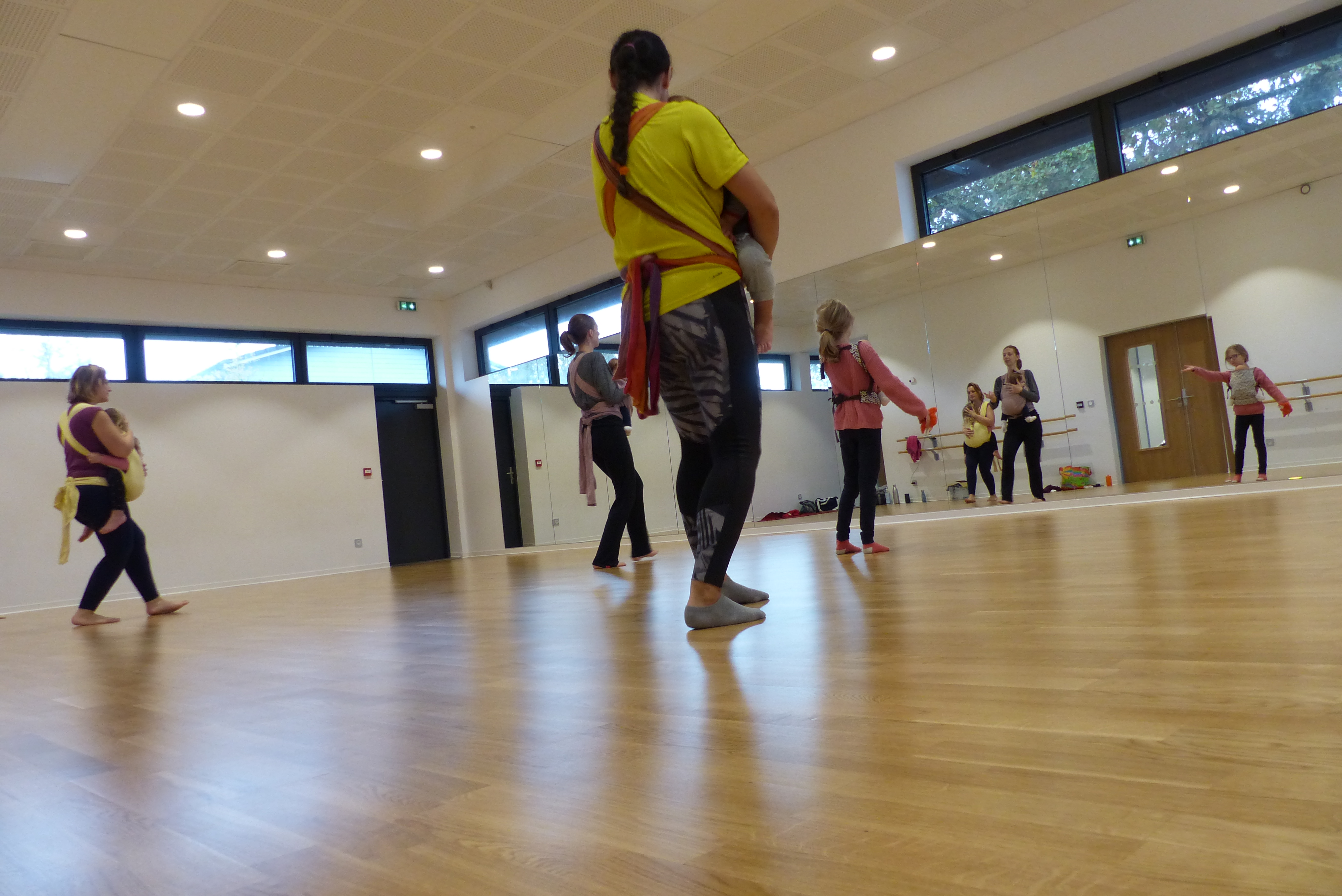 Atelier pour les parents qui portent leurs bébés ou bambins à l’aide de moyens de portage physiologiques.