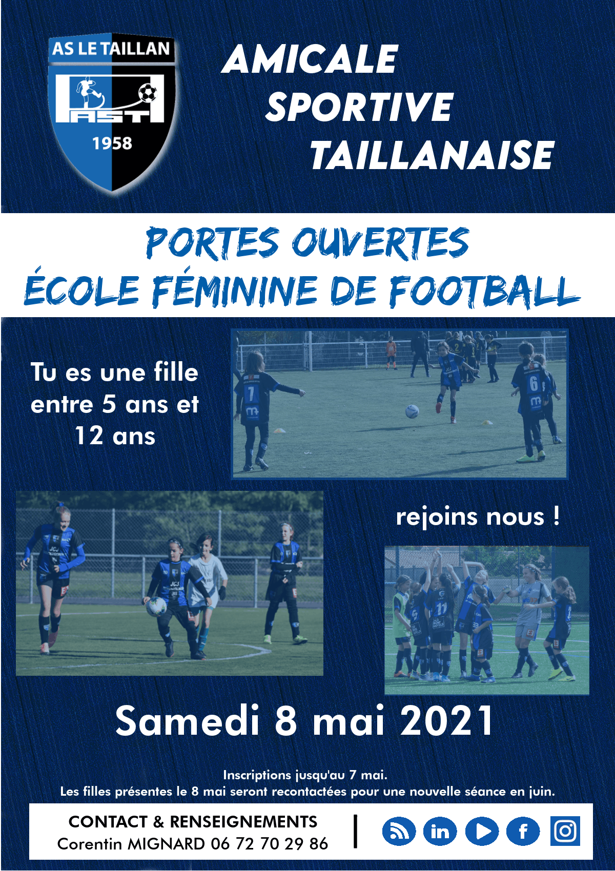 L'Amicale Sportive Taillanaise organise des Portes Ouvertes pour les filles de 5 à 12 ans le samedi 8 mai prochain. Nous vous attendons nombreuses. Vous pouvez venir accompagnée d'une copine.