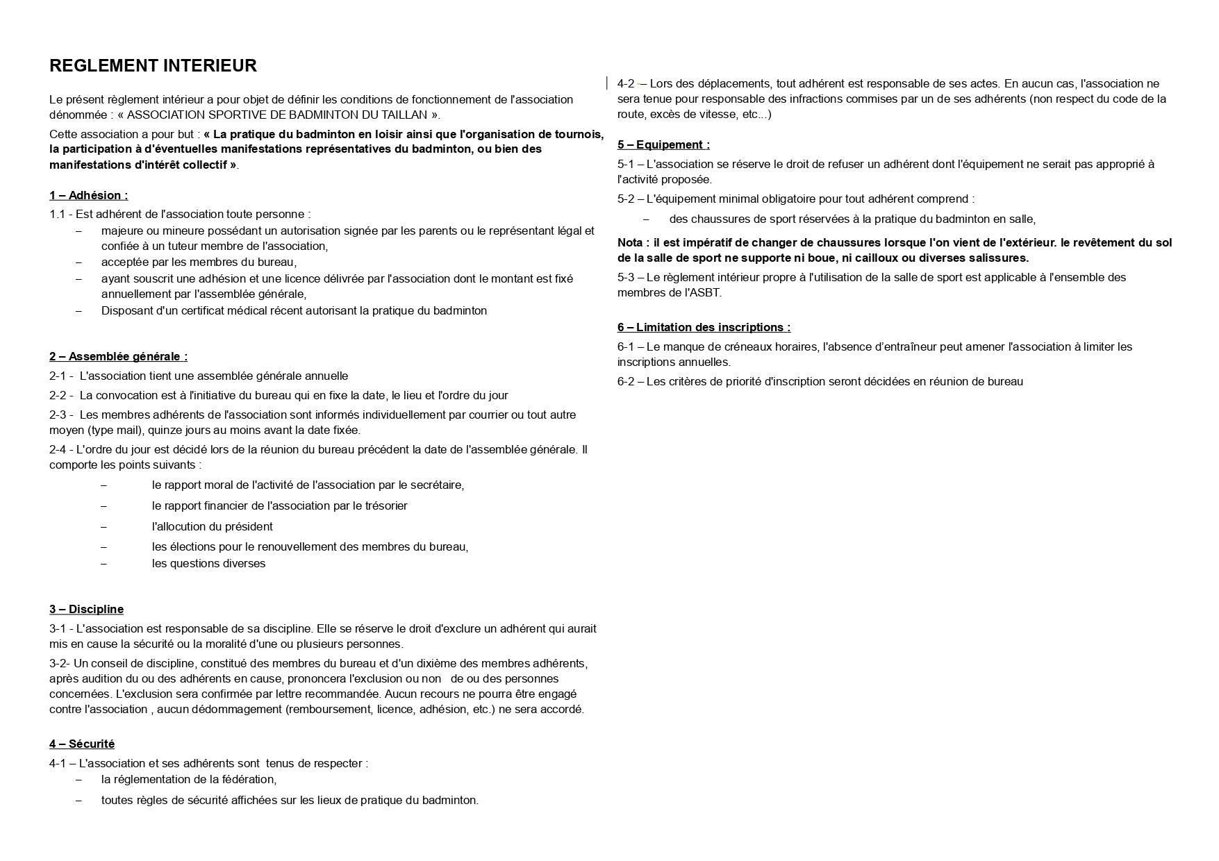 Plus d'informations sur Association Sportive de Badminton du Taillan (ASBT) ?