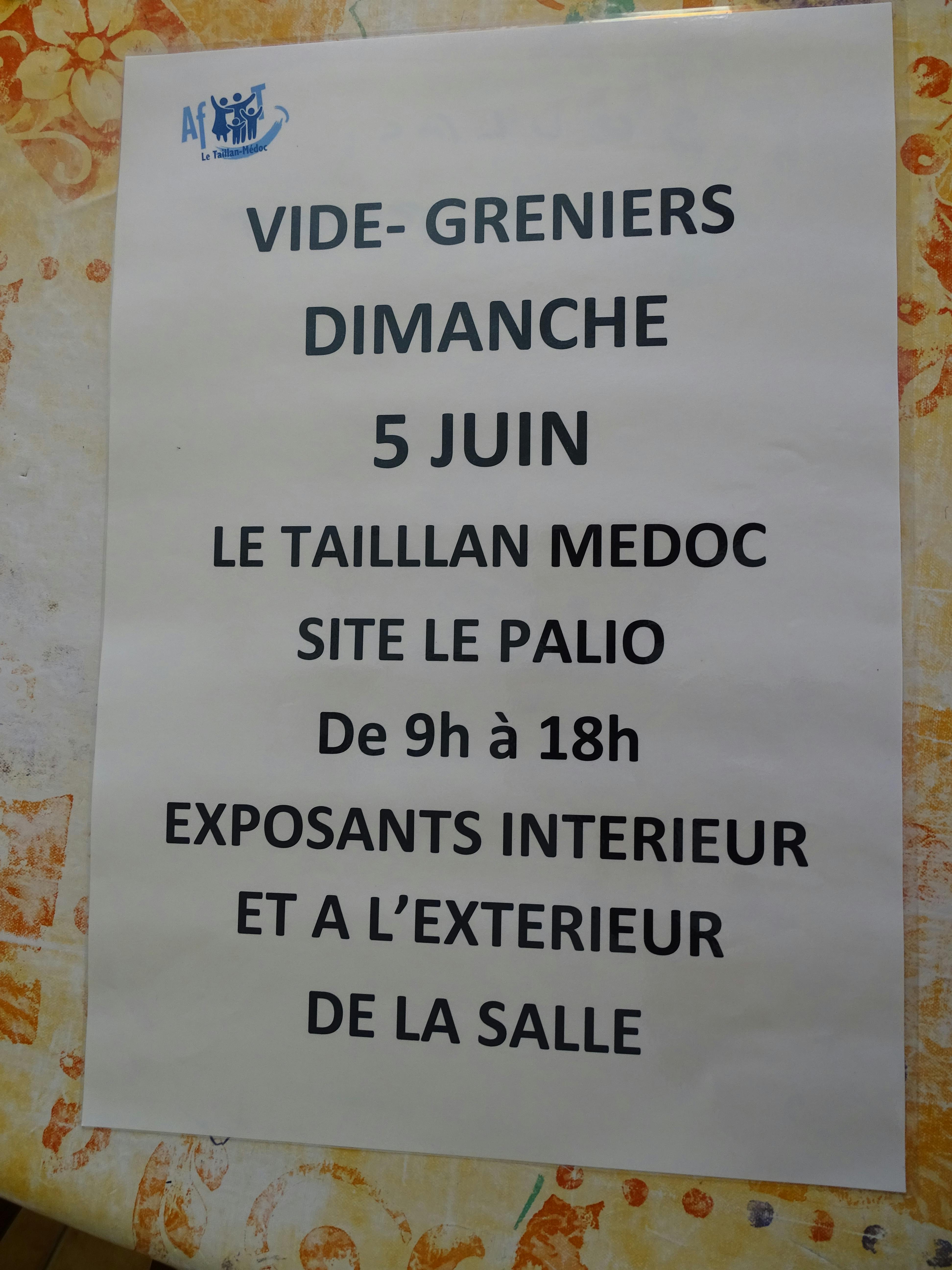 Association Familiale Taillan organise un vide greniers a la Salle du Palio