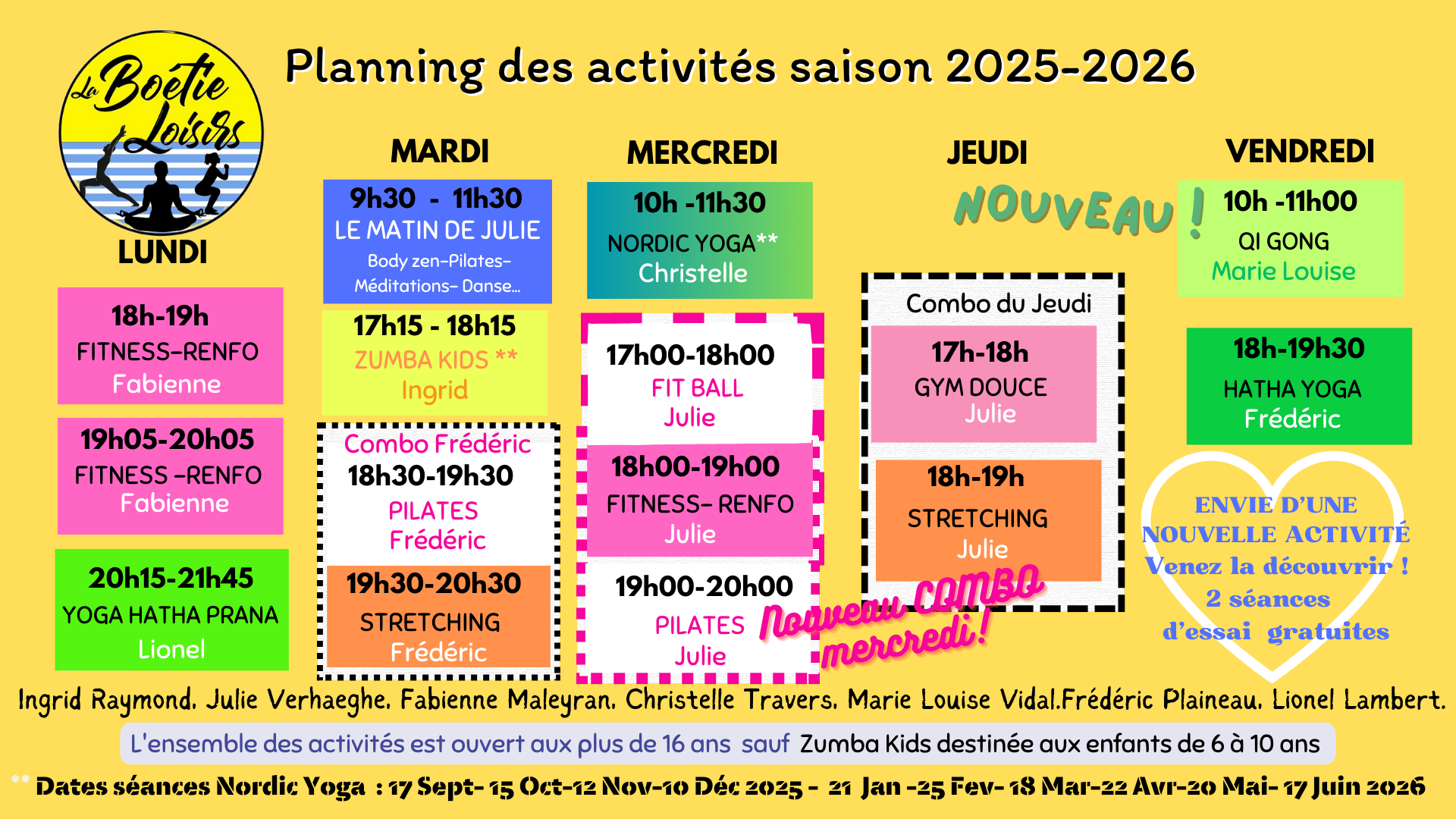 #LIA#Pilates#Stretching#Zumba KIds#Nordic Yoga#Fit Ball#Fitness#Yoga Hatha Prana#Renforcement Musculaire#Qi Gong